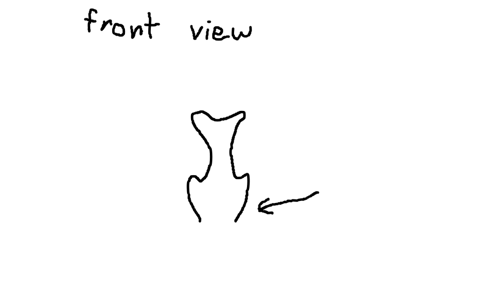 So I have no current pictures and I am on vacation, so this is the best we got. The arrow is pointing to the left back leg in the front silhouette. The point being that on my carving the angle of the leg makes everything come together.